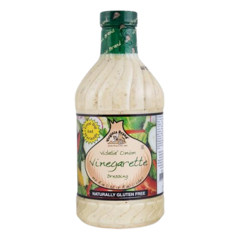 Aderezo a base de aceite y vinagre con cebollas de Vidalia añadidas y sazonado con mostaza y especias.